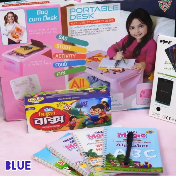 এই মিনি রিডিং টেবিলটি শিশুদের পাড়া-লিখার পরিবেশ তৈরী করতে গুরুত্বপূর্ণ ভূমিকা রাখবে এছাড়াও এই টেবিলটি সব জাইগাতে ব্যাবহার ও বহনযোগ্য এবং পড়া-লিখার সকল শিক্ষা উপকরণ গুলো এই টেবিলটির মধ্যে গুছিয়ে রাখতে পারবে।এই টেবিলটির আকার: 17.5″L -w 12″ h 7.5″